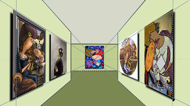 Featured artist: Michael Schmitt The other great category or remaining art were illustrations that showed layout and camera angles. Here the editor turned to another fine illustrator and filmmaker, Michael Schmitt. In some cases the editor asked Mike to take the characters from Claude, one of the authors most famous completed films, and use then to represent the layout elements as shown in such works as Diego Rivera's Mother and Child (please see the art at the beginning of this web page). For illustrations of various types of camera angles and perspectives, a combination of the author's and Mike's characters were used. Mike has most recently developed a delightful set of educational films for Shmoop University, and he too would be delighted to entertain other offers of employment. |